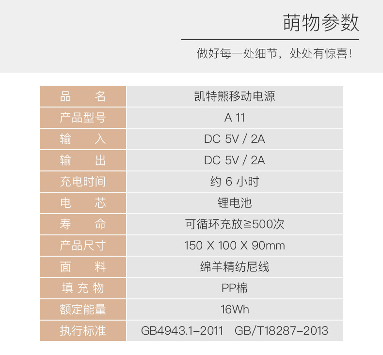 毛绒玩具移动电源定制 凯特熊毛绒娃娃充电宝 创意公仔礼品充电宝