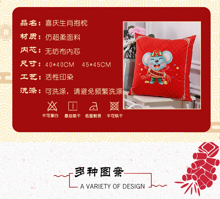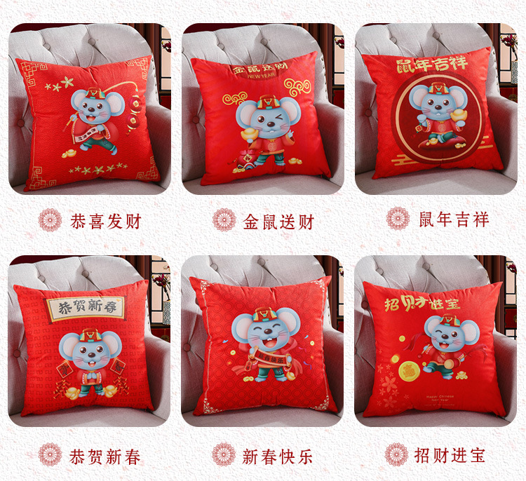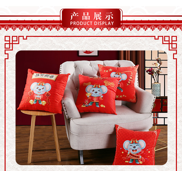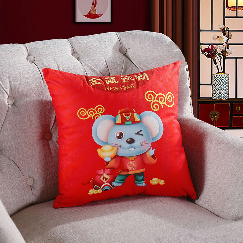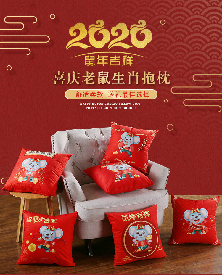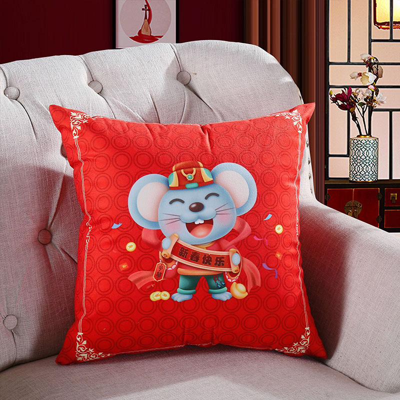 鼠年吉祥礼品抱枕来图来样定制 卡通印花靠垫开门红企业logo抱枕被