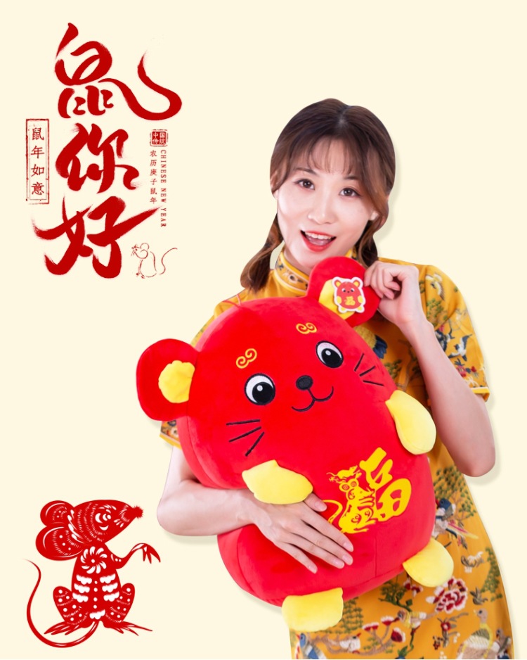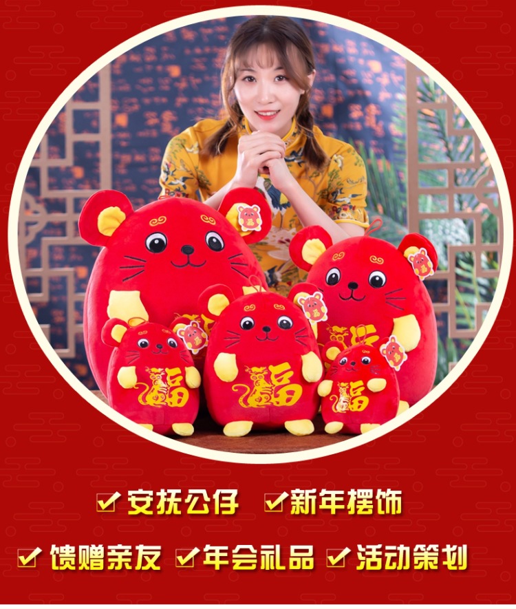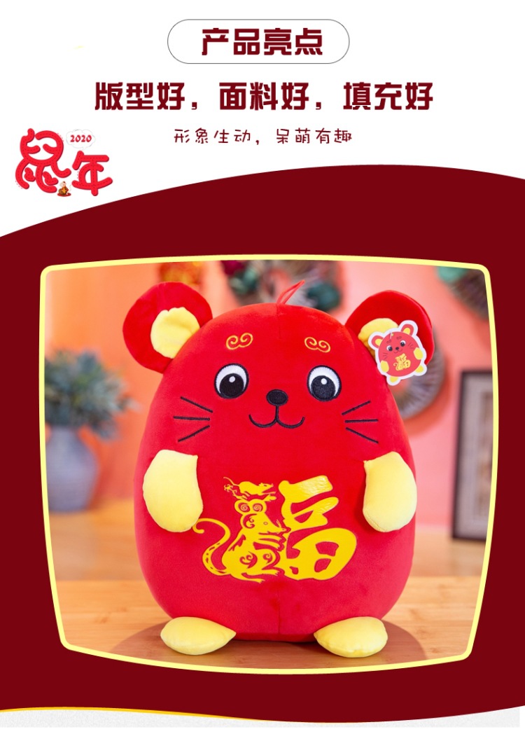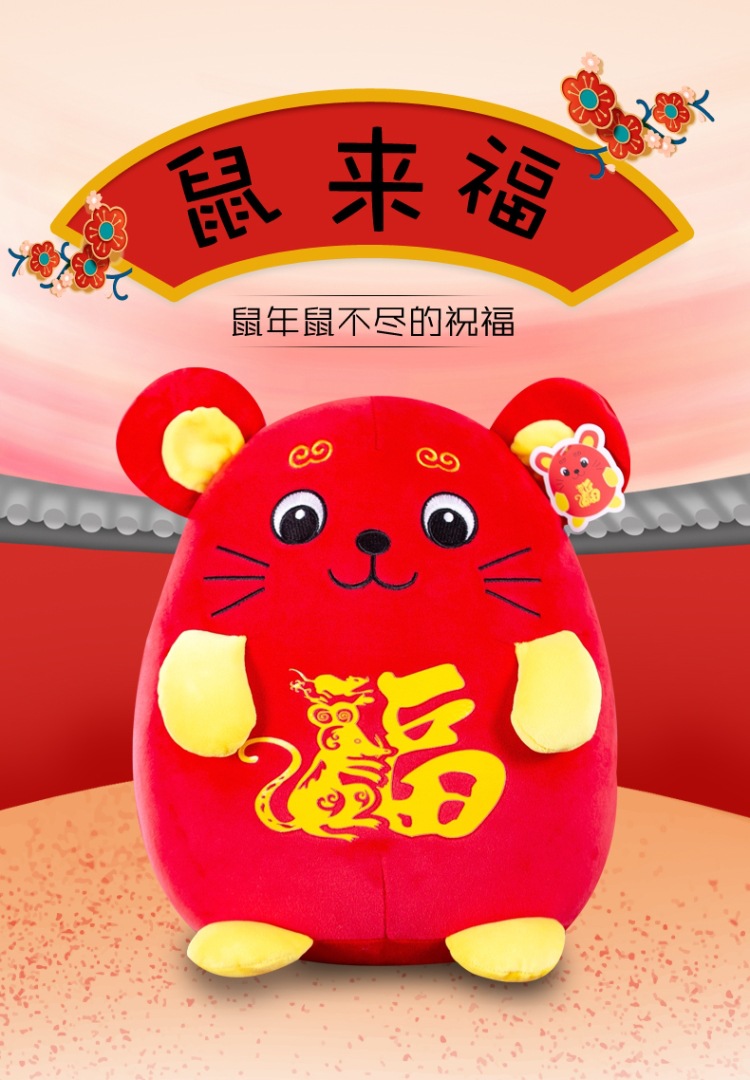 2020鼠年福字鼠毛绒玩具吉祥物  鼠你有福公仔礼