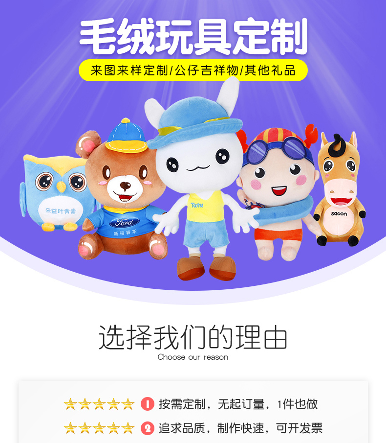 毛绒玩具定制 玩偶定做 企业吉祥物公仔来图订做 布偶娃娃挂件订制