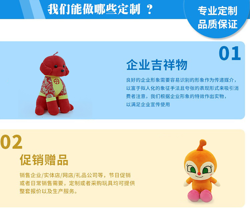 随着人们生活水平的不断提高,传统的毛绒玩具可能已经替代不了智能玩具了。但是对于很多的企业来说,传统毛绒玩具是企业的吉祥物的代表,也是很多企业举办活动的促销产品之一...