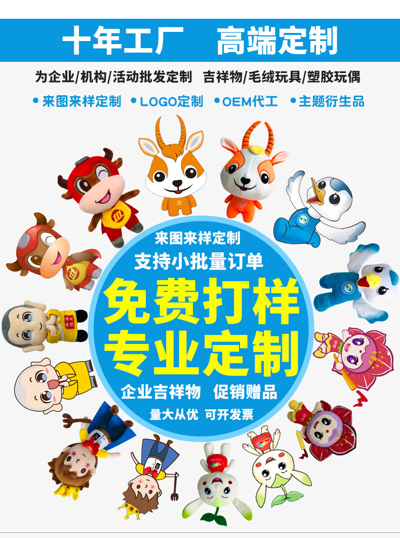 定制卡通玩偶公仔 毛绒玩具定做 公司吉祥物礼品