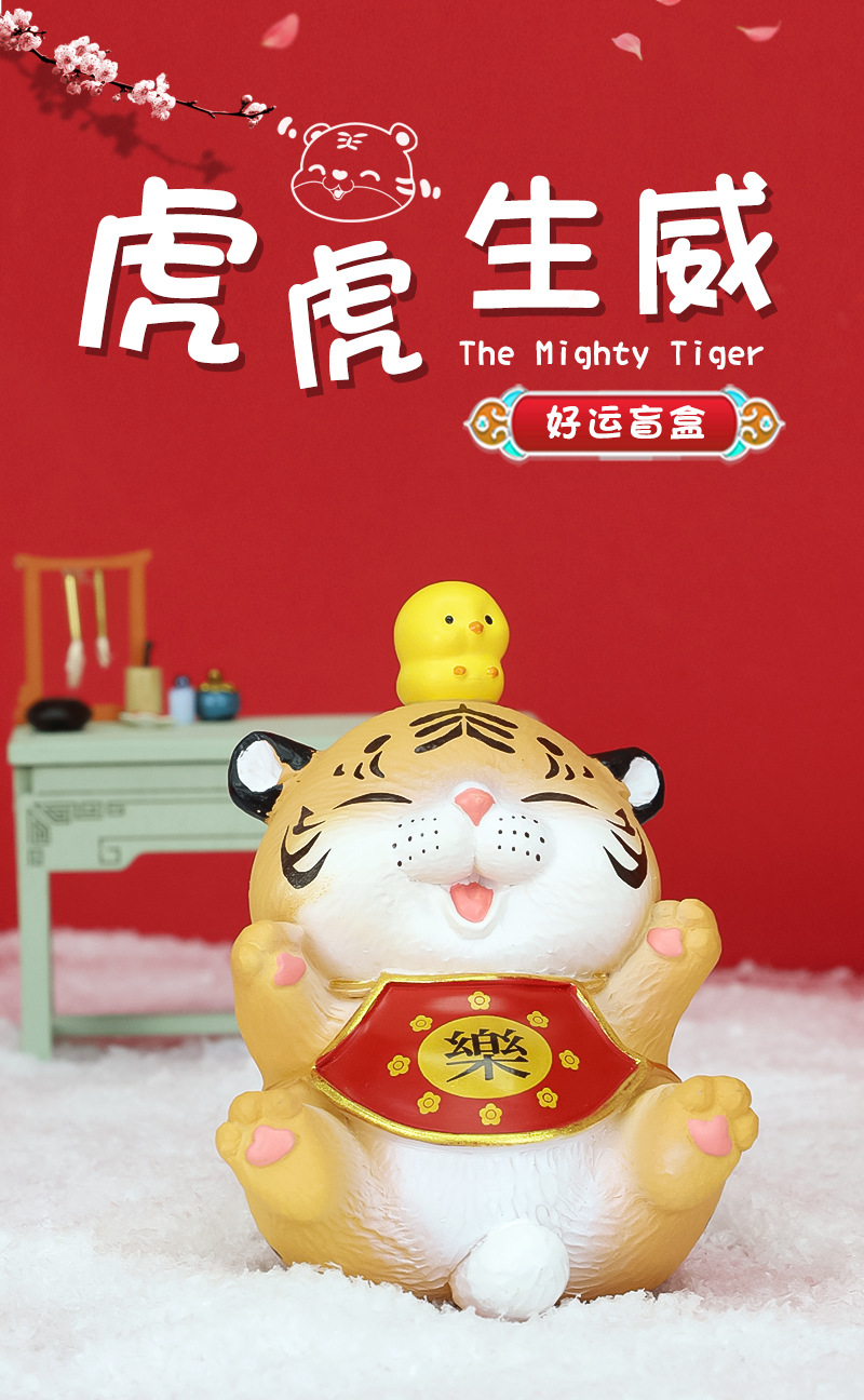 虎虎生威盲盒摆件新年国风招财吉祥老虎卡通动物公仔工艺礼品礼物