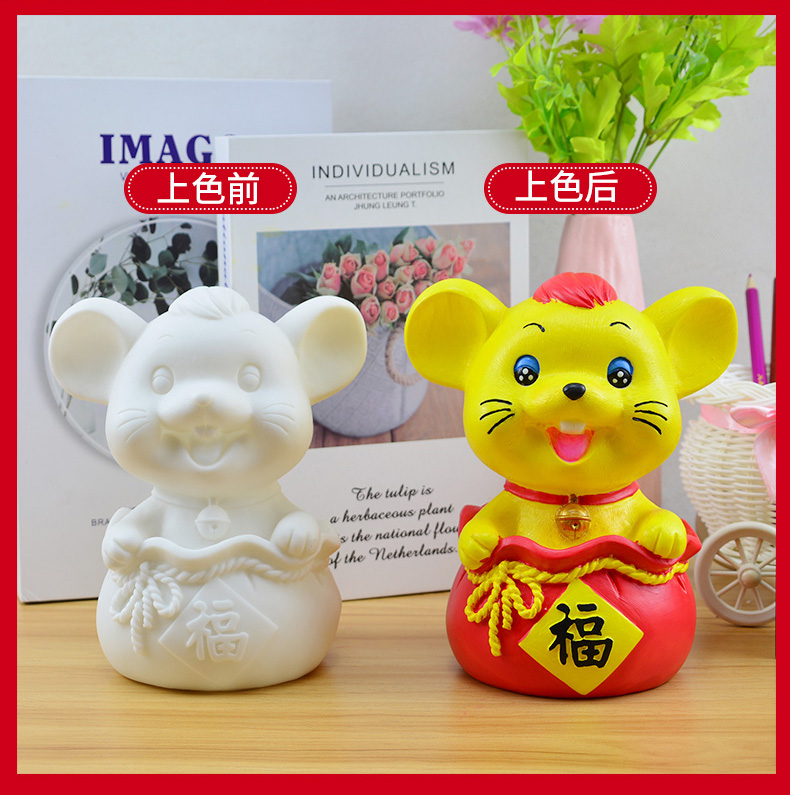 虎年新年彩绘石膏画娃娃涂色白胚涂鸦绘画手工