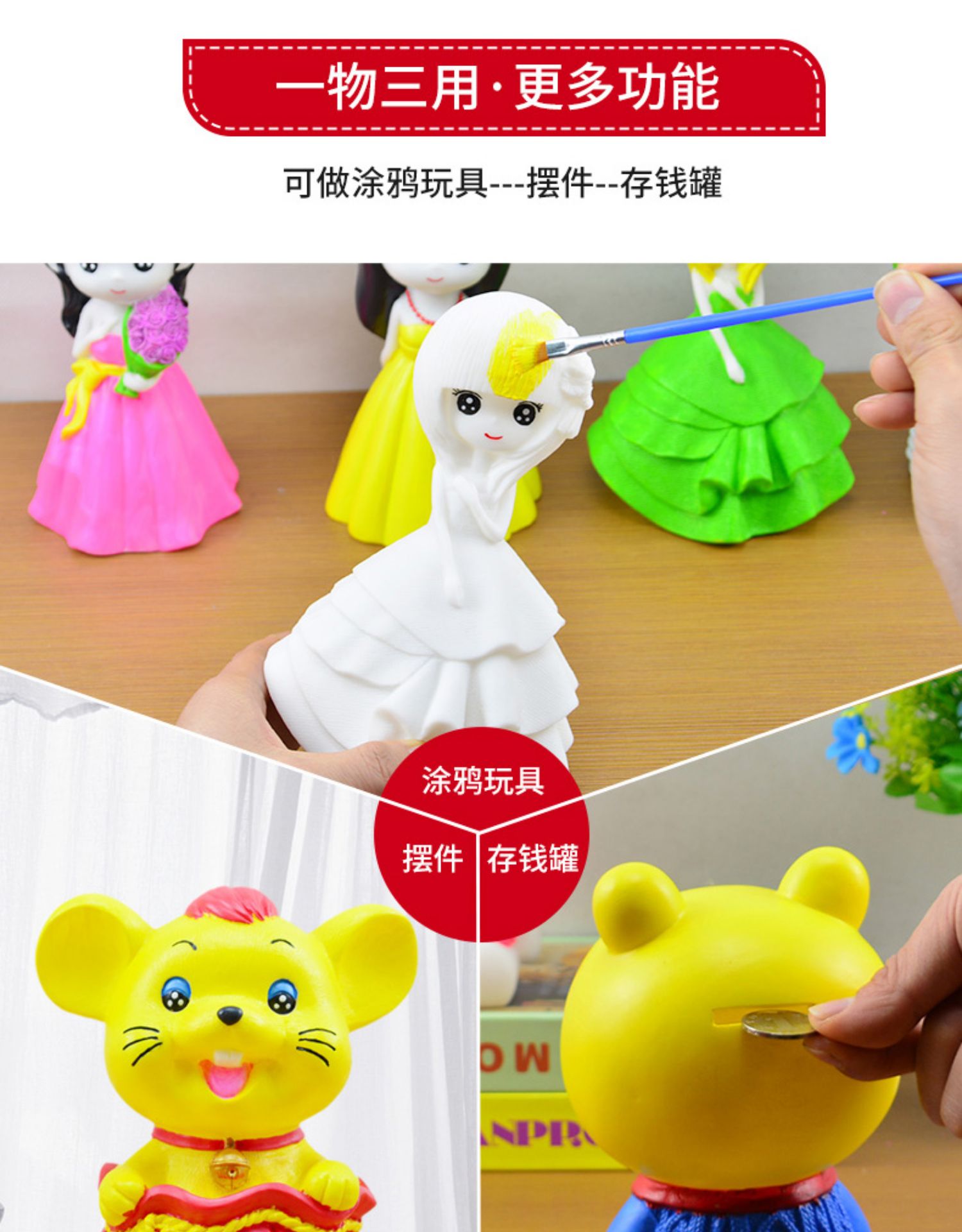 儿童涂色玩具石膏娃娃彩绘存钱罐白胚画模具d