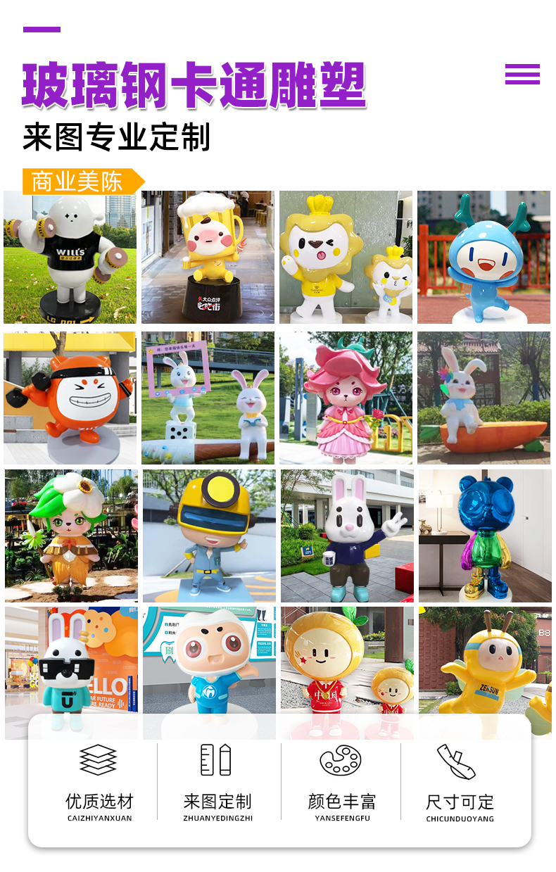 玻璃钢卡通雕塑定制吉祥物大摆件网红商场美陈
