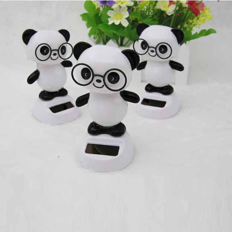 太阳能摆件 熊猫公仔太阳能车载饰品定制